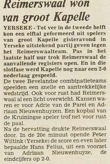 | 14-05-1977 Reimerswaal onder 18 - Kapelle A1 uitslag nog onbekend |